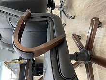 Кресло для руководителя MB-8022, цвет черная/дерево - орех, обивка Натуральная кожа