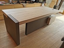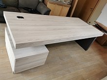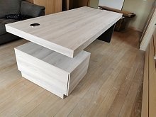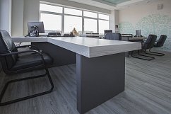 - Массивные столы руководителя со встроенными опорными тумбами (длиной от 1,6 до 2,2 метров), позволяющие скрыть всю офисную проводку;