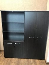шкафы высотой 182 см, каркас шкафов, топ и фасады деревянных дверей - венге, система плавного закрывания дверей шкафов и ящиков тумб.