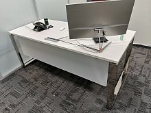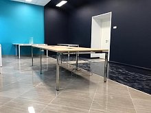 - Брифинг-приставки: Для быстрых совещаний к столу руководителя можно пристыковать брифинг-модуль на такой же металлической опоре, сохраняя единую линию горизонта.