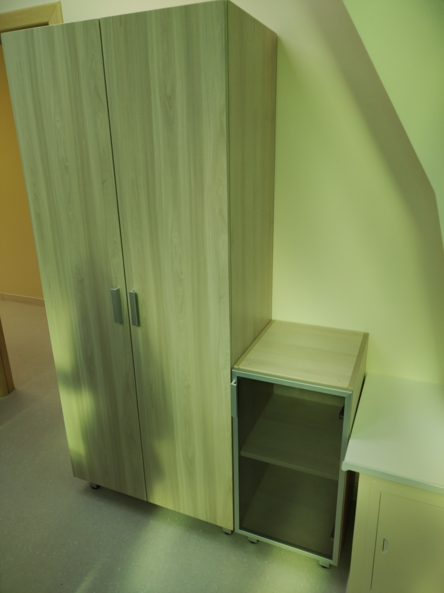 -Кроме элементов мебели из МДФ и ДСтП применяются стеклянные двери из качественного стекла (РБ) толщиной 4мм с полированными кромками предотвращающими вероятность случайного пореза.