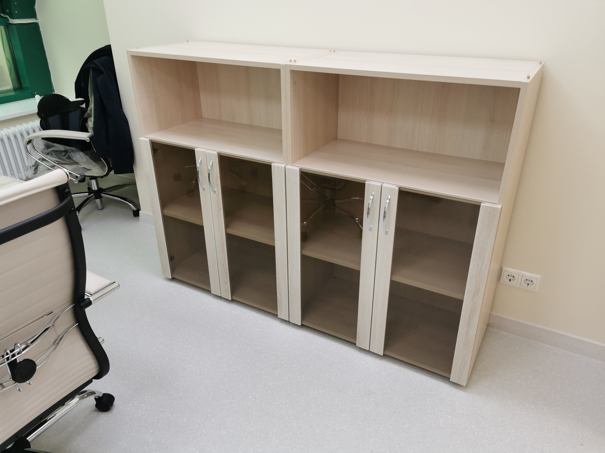 -Опоры столов, каркасы, задние стенки стеллажей и тумб выполнены из ДСП толщиной 18 мм производства EGGER и Pfleiderer.
