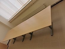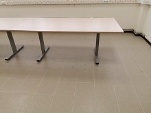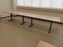 - Столы на металлокаркасе с L-образными и T-образными опорами (сечение профиля 80×60 мм и 60×30 мм) обеспечивают устойчивость и современный вид