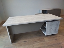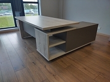 Серия столов руководителя представлена моделями левого (B-119L) и правого (B-119R) исполнения. Они выполнены из ЛДСП и имеют толщину столешницы 36 мм. Опоры столов регулируются, что обеспечивает удобство при использовании.
