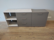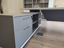 Для хранения мелких предметов в кабинете руководителя VILAS предусмотрены тумбы с тремя ящиками и дверью (B-212). Они выполнены из ЛДСП.