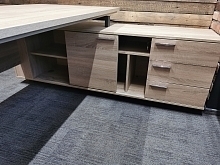 Обновление кабинета для руководителя серии Яппи: теперь столы, приставки и тумбы размещены на металлокаркасе.