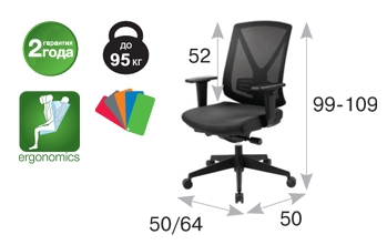 - Материалы спинка — сетка, сиденье — ткань