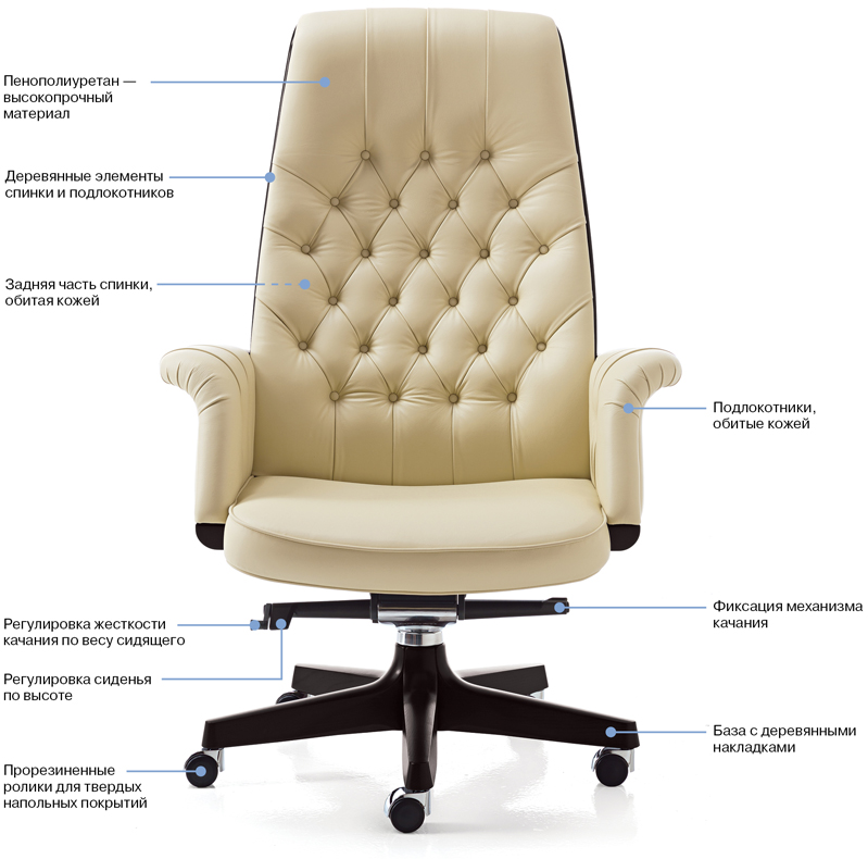 Декоративной стяжке капитоне уже больше полувека, но она до сих пор популярна — ею украшают не только кресла и диваны, но также стены, светильники и даже шкафы. Обитое кожей в технике капитоне классическое кресло Opera станет знаковым элементом в офисном или домашнем кабинете, подчеркивая статус своего обладателя. Коллекция Opera — благородный союз дерева и натуральной кожи.