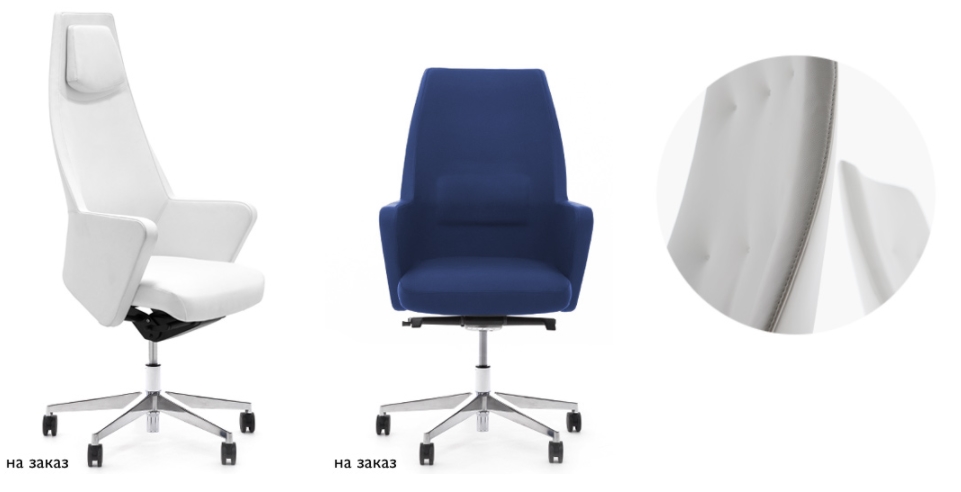 Модель совмещает жесткий каркас, механизм качания с фиксацией в любом положении, функцией anti-shock и регулировкой жесткости по весу сидящего, а также интегрированную подушку поддержания поясничного отдела и подголовник на магнитах в версии для руководителя.