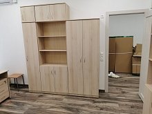 - Широкую (77 см) тумбу для оргтехники с двухдверным распашным фасадом без замка.