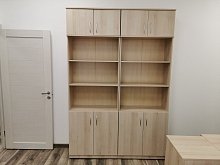 Любой стеллаж также служит корпусом, двери из ЛДСП, стеклянные фасады и фурнитуру к которому можно подбирать отдельно.