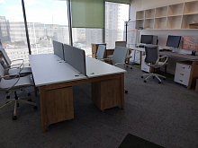 Мебель для персонала ONIX WOOD ― это то, что нужно, чтобы создать незагруженный и располагающий к работе open space офис, отвечающий последним тенденциям. Стиль «скандии» с его древесными фактурами здесь превосходно дополнен парящими столешницами и А-образной формой опор. Массив дуба не только красивый, но и практичный материал удивительной прочности, который вы вряд ли увидите в других коллекциях мебели эконом-класса.