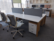 Чтобы посторонние звуки меньше отвлекали сотрудников во время работы, на столы можно установить экраны. В наличии тканевые (белые, бежевые, серые, синие, зелёные и оранжевые) и ЛДСП-экраны в цвет офисной мебели.