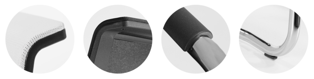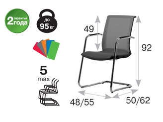 Пластик черный, сетка черная и белая. Мягкие подкладки на полозьях защищают напольное покрытие от царапин. Кресла штабелируются по пять штук.