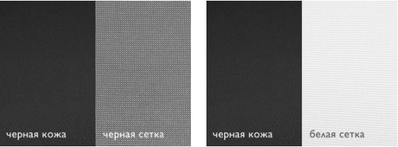 Обивка сиденья выполнена из кожи, спинка представлена в сетке, база хромированная, пластиковые накладки на подлокотники.