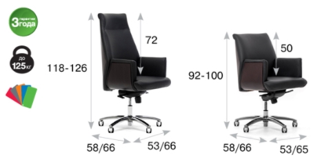 Складское кресло Zeus представлено в двух вариантах: с высокой и низкой спинкой c полированной базой, в натуральной коже черного цвета. Модель снабжена механизмом качания с возможностью фиксации спинки, с регулировкой сиденья по высоте и регулировкой жесткости пружины по весу сидящего.